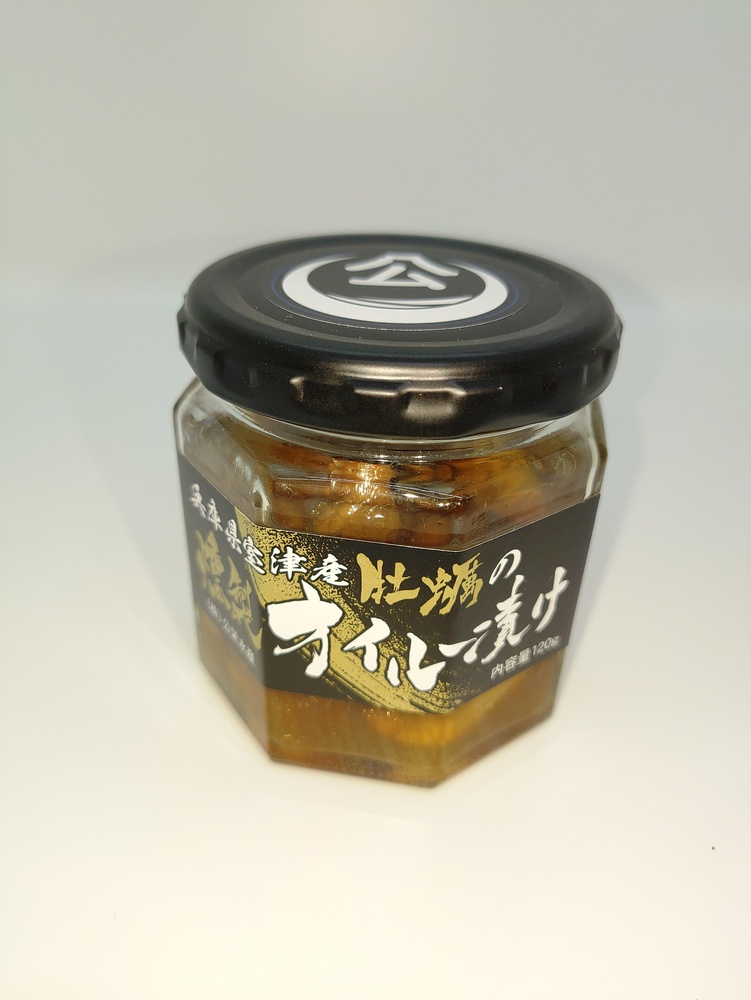公栄水産の牡蠣を自分たちで燻製し、瓶詰屋さんに加工してもらいました。酒のつまみ、オイルはパスタなどに利用できます